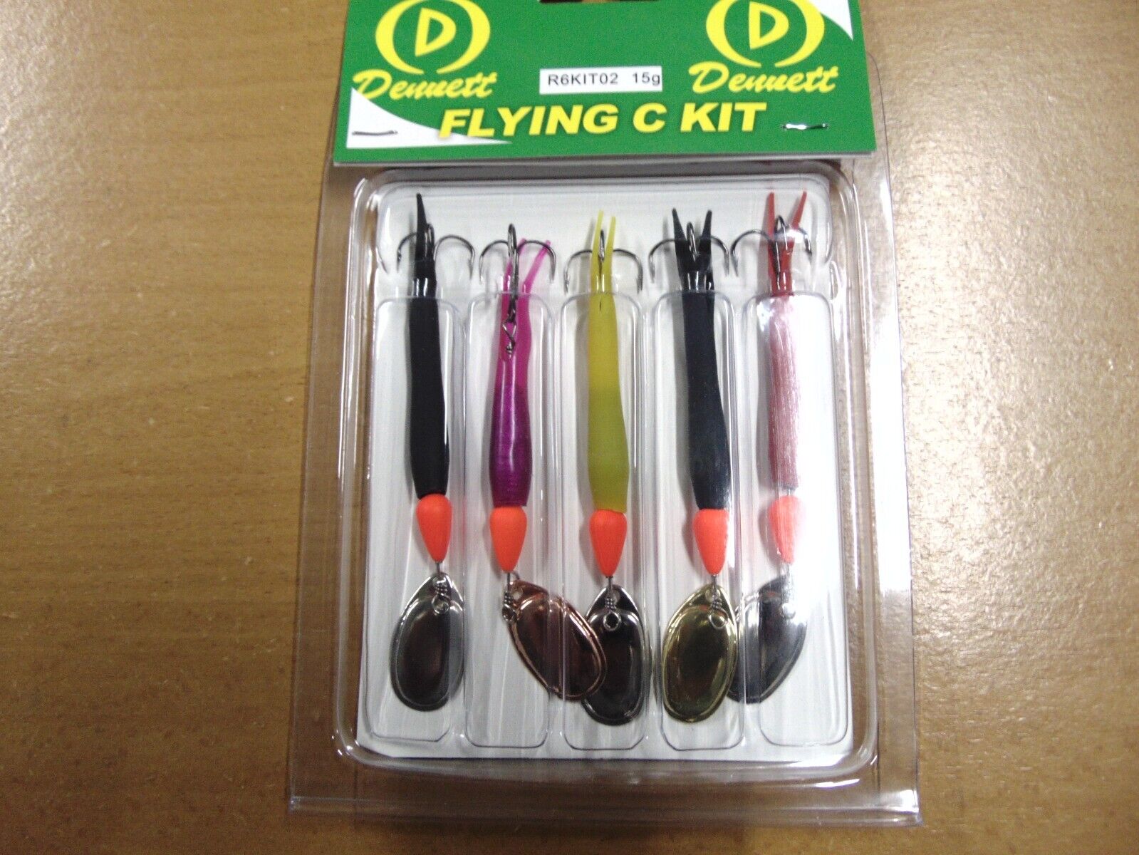 Dennett Flying C Spinning Salmon Lures VMC Treble Hooks Spinners pack of 5 x 15g
