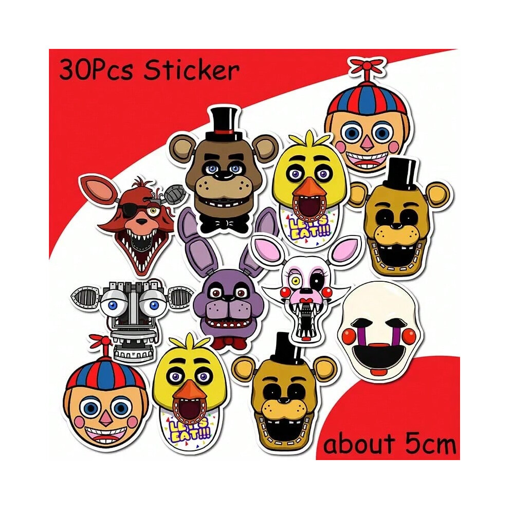 (Sticker 30pcs) FNAF Freddy Theme Funny Party Supplies Tableware Paper Cup Plate Flag Baby Shower Balloons APRIL FOOL'S DAY Party Decoration