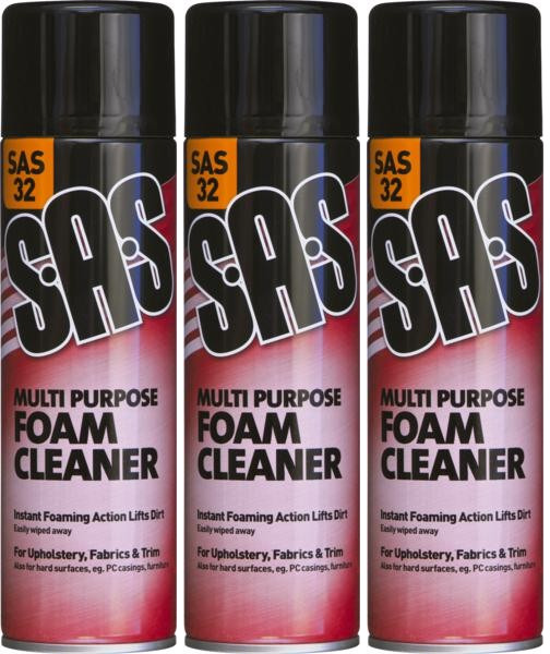 3 x SAS Multi Purpose Foam Cleaner Car Upholstery Carpet Vinyl 500ml - SAS32