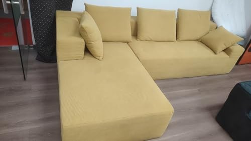 Hearthform Compressed Sofa in a Box Yellow Velvet L Shape Modular Cloud Couch, Boneless Design Foam Sofa, Vacuum Packed for Living Room (Left Hand Facing)
