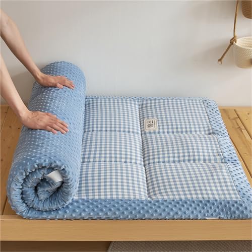 PUIPPUII Japanese Futon Mattress, Cotton Cover with High Support Foam, Foldable Roll Up Floor Bed, Portable Tatami Sleeping Pad & Floor Lounger for Guest, Couch, Camping and Travel(Blue a,0.9 * 2.0m)
