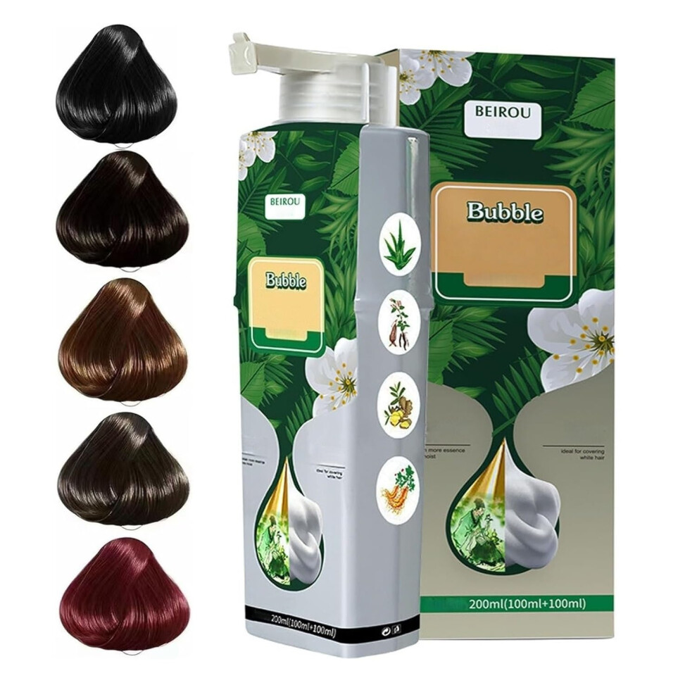 Herbishh Bubble Foam Hair Dye Shampoo 3 in 1 Dye for 100% Grey Coverage Permanent & Instant Hair Coloring for Men & Women Long-lasting & Travel-fri