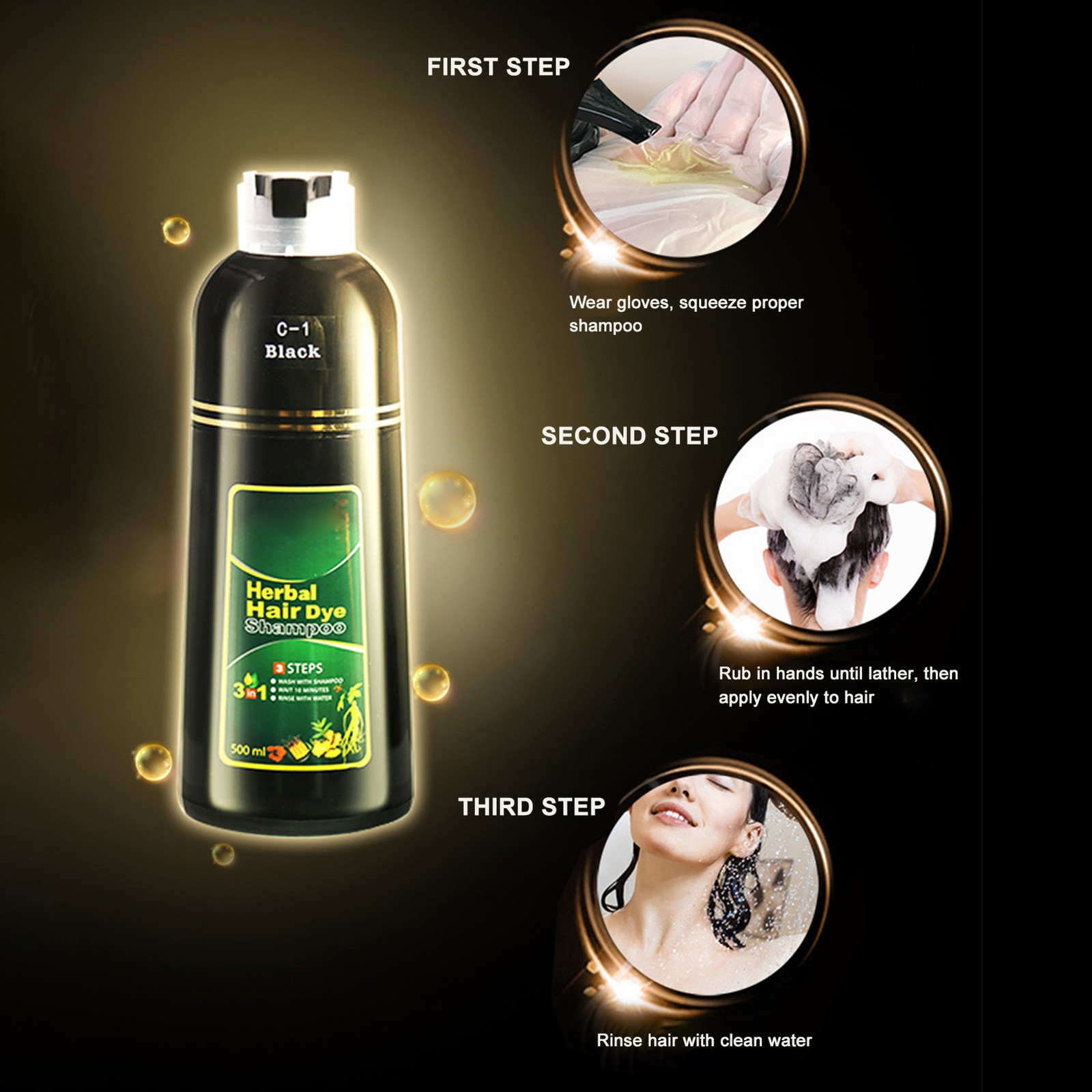 Hair Color Shampoo 450ml Black Hair Dye with Gray Coverage, LongLasting Shine and Rich Foam