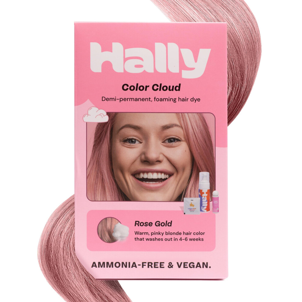 Hally Hair Color Cloud Hair Dye (Rose Gold) - Demi-Permanent Foam Hair Color for Women & Men - Mess-Free & Long-Lasting Hair Dye Kit Hair Coloring Pr