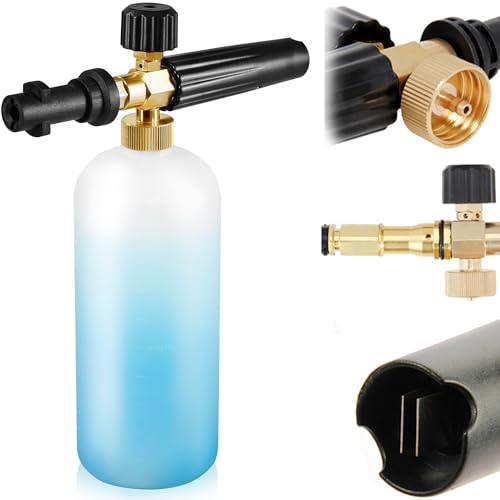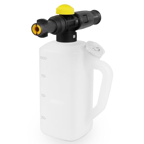 XFLYP Snow Foam Lance, Foam Cannon 1L for Karcher K Series K2/K3/K4/K5/K6/K7 Adjustable Soap Dispenser Foam Bottle Nozzle for High Pressure Car Wash Gun Accessory, Rotating Fan-Shaped Water Outlet
