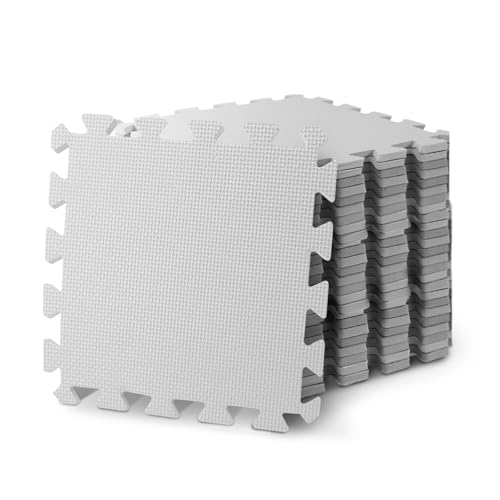 EVA Interlocking Floor Tiles Soft Foam Kids Play Mat Gym Yoga Exercise Fitness Jigsaw puzzel Carpet (White/Grey, 20 pc)