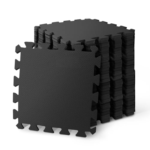 EVA Interlocking Soft Foam Play Mat Kids Gym Yoga Exercise Fitness Floor Tiles (Black, 30Pc-30 Sq Ft)