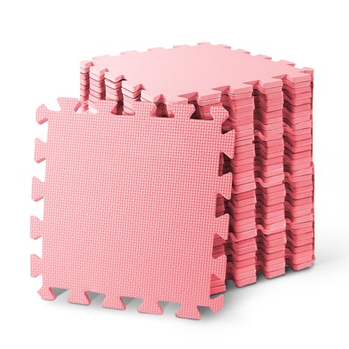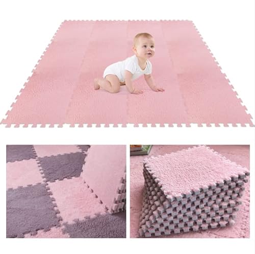 12Pcs Foam Play Mat 30x30x1cm Puzzle Play Mats Floor for Kids Soft Plush Interlocking Foam Mat Set with Edges for Floor Protection Yoga Fitness Workout Mats kids Play Mats (pink)