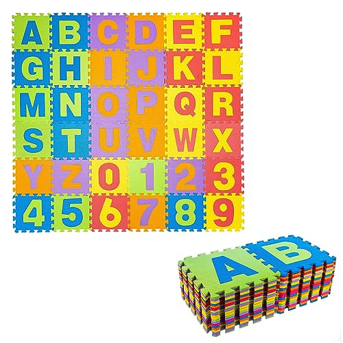 ADEPTNA 36 PCS MULTI-COLOURED SOFT EVA FOAM JIGSAW PLAY MAT LETTERS AND NUMBERS - ALPHABET FLOOR MAT FOR KIDS PLAY ROOM - EACH TILE MEASURES 17CM X 17CM X 1CM