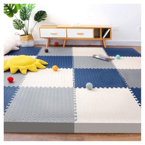 JNTFNE 30 Pieces Plush Foam Floor Tiles,Foam Puzzle Play Mats,12 Inch Interlocking Carpet Tiles for Floor,0.23 and 0.39 Inch Thick(Size:0.39 inch,Color:Blue+Gray)