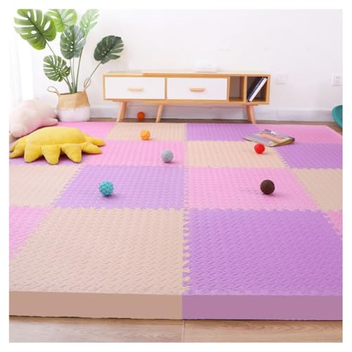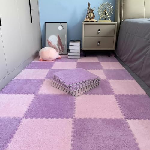 JNTFNE 30 Pcs Plush Foam Puzzle Play Mats for Floor,11.8 Inch Interlocking Carpet Tiles,Foam Floor Tiles Rugs,0.23 and 0.39 Inch Thick(Size:0.39 inch,Color:Purple+Pink)