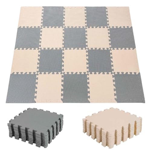 YORKING 20Pcs Foam Baby Play Mats 30x30x1cm EVA Baby Floor Tiles Thick Soft Floor Interlocking Mat Waterproof High-Resilience Foam Floor Puzzle Mat for Children's Play and Crawl (Grey and Rice-White)