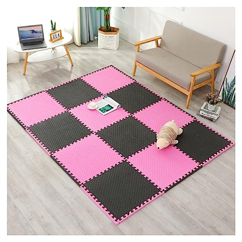 30x30cm Interlocking Carpet Tiles,10 Pack EVA Foam Mats Puzzle Play Mats,Square Climbing Area Rug for for Toddlers,Anti-Slip Protective Floor Tiles (Pink Black,1.0cm Thick)
