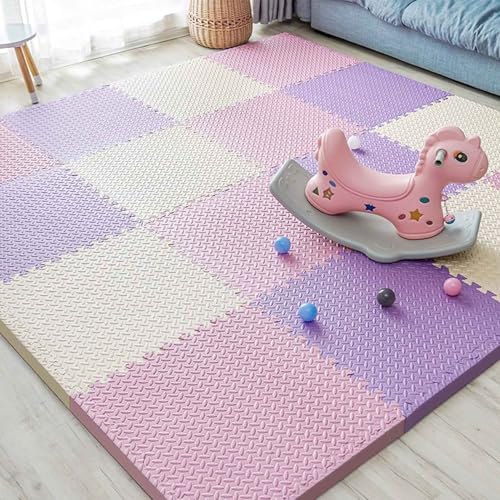 36 PCS Foam Puzzle Floor Mat Multicoloured Foam Play Mats with Borders Interlocking Multi Use Floor Rug (30cm×30cm×1.2cm Each Tile)(Beige/pink/purple)