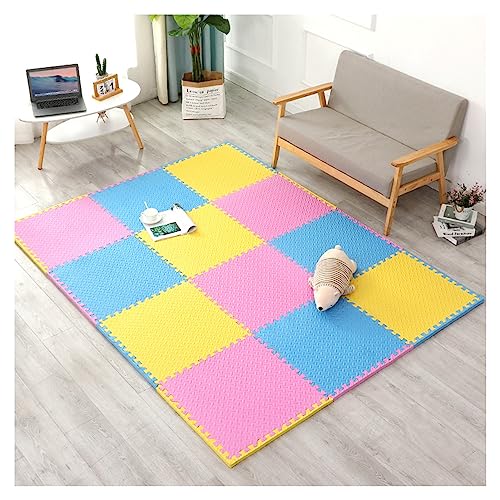 10 pieces of foam floor tiles, interlocking foam tiles, non-slip, textured, square foam puzzle play mats for playroom, basement, garage (size: 30 x 2.5 cm, color: pink + yellow + blue)
