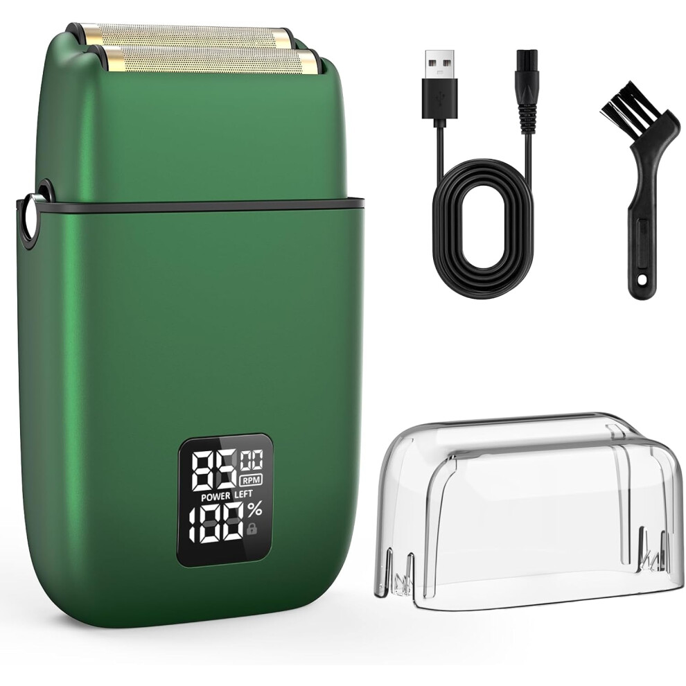 (Green) Foil Shaver for Men, Electric Razor for Men with Double Foil Meshes, IPX7 Waterproof Men's Shaver with 3-Speed Control, Suitable