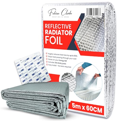 Radiator Foil Reflector Roll 5m x 60cm – Heat Reflective Radiator Foil Panels and Insulation Sheet – Radiator Reflector Foil for Behind Radiators – Thermal Radiator Insulation Includes Sticky Pads