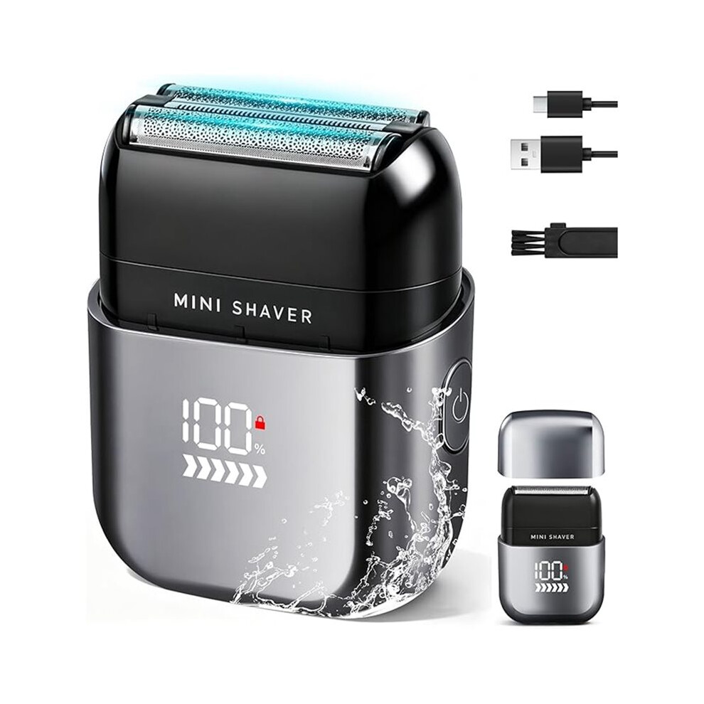 Electric Foil Shavers for Men,Mini Electric Travel Razor with LED Display,IPX7 Waterproof Wet/Dry Foil Shaver,USB-C Rechargeable,Compact Face Shaver