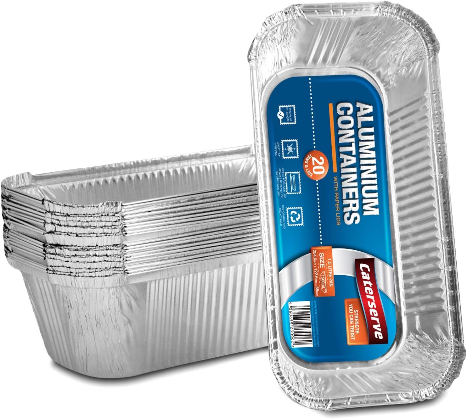 Caterserve 50 Small Aluminum Foil Trays Containers with Paper Lids 500ml | Great for Meal Prep Baking Food Storage Takeaway Tins