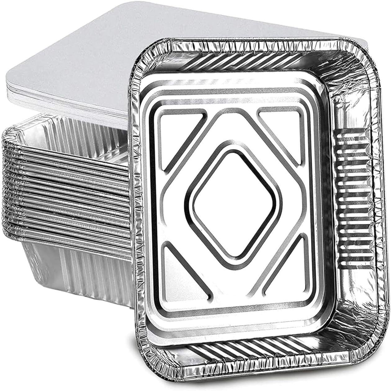 50PCS Disposable Aluminium Large Foil Trays with Lids, 26X19X6Cm Tin Foil Trays