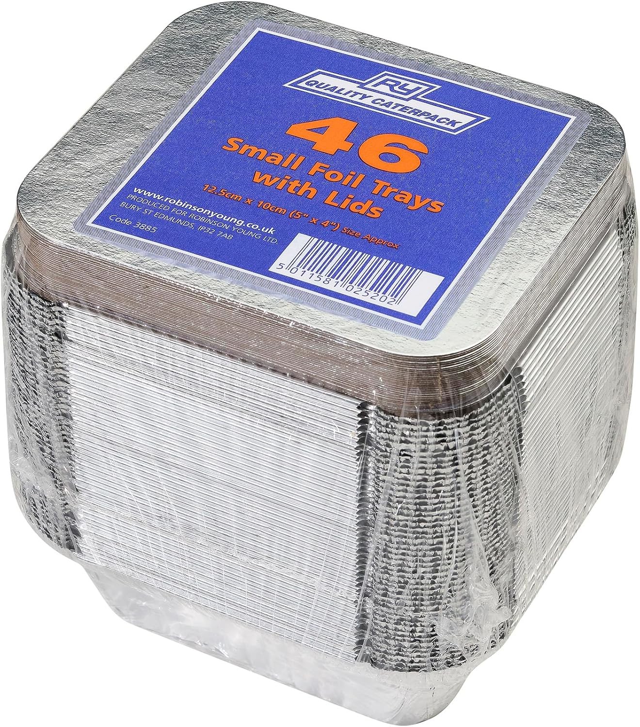 Caterpack Foil Trays With Lids, Small, Disposable Food Containers, 12.5cm x 10c