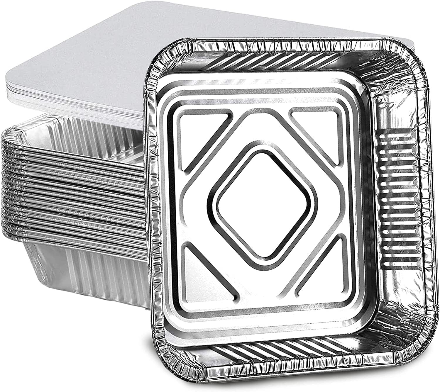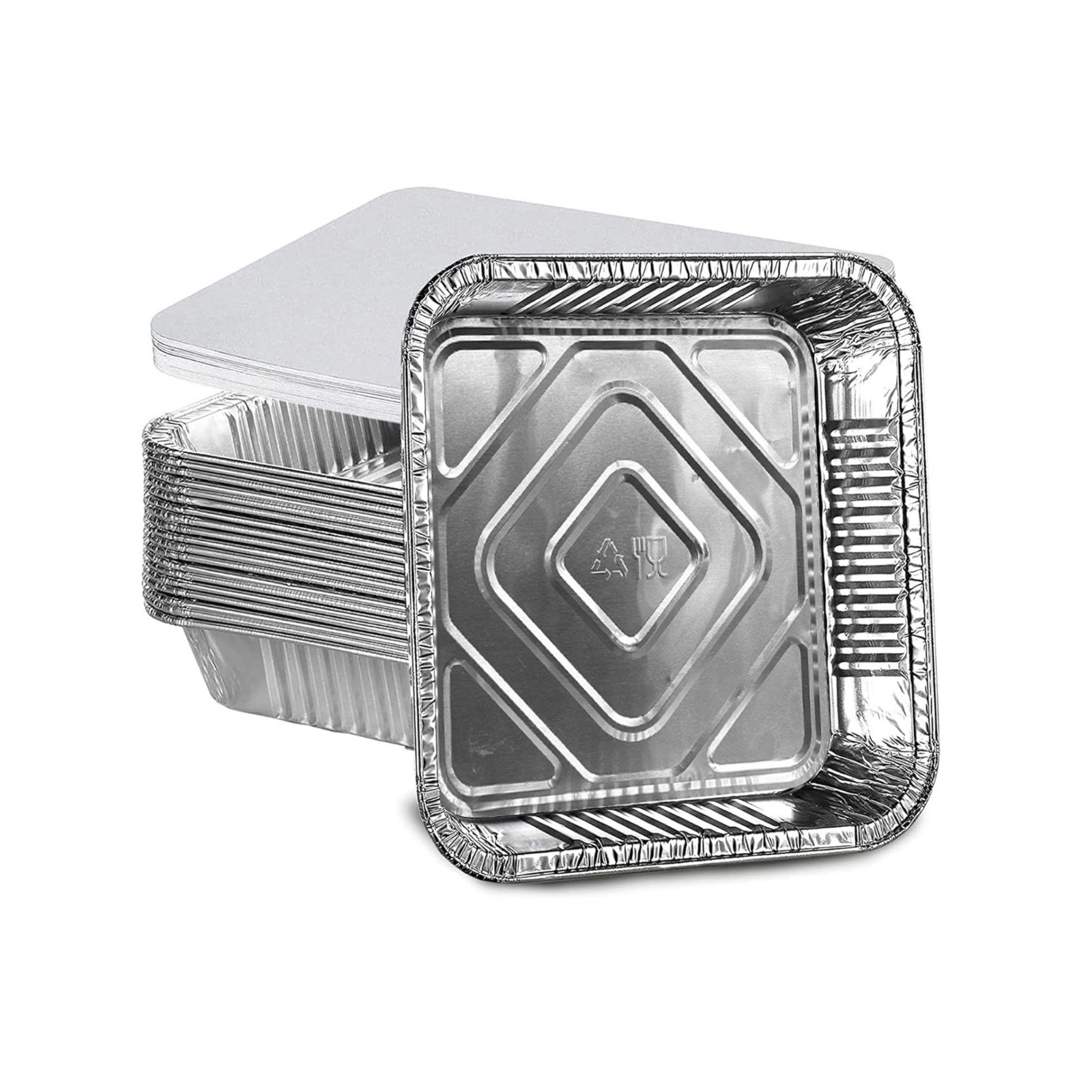 Pack of 20 Square Aluminium Foil Trays with Lids 24cm x 24cm 9x9 inch Baking Pan