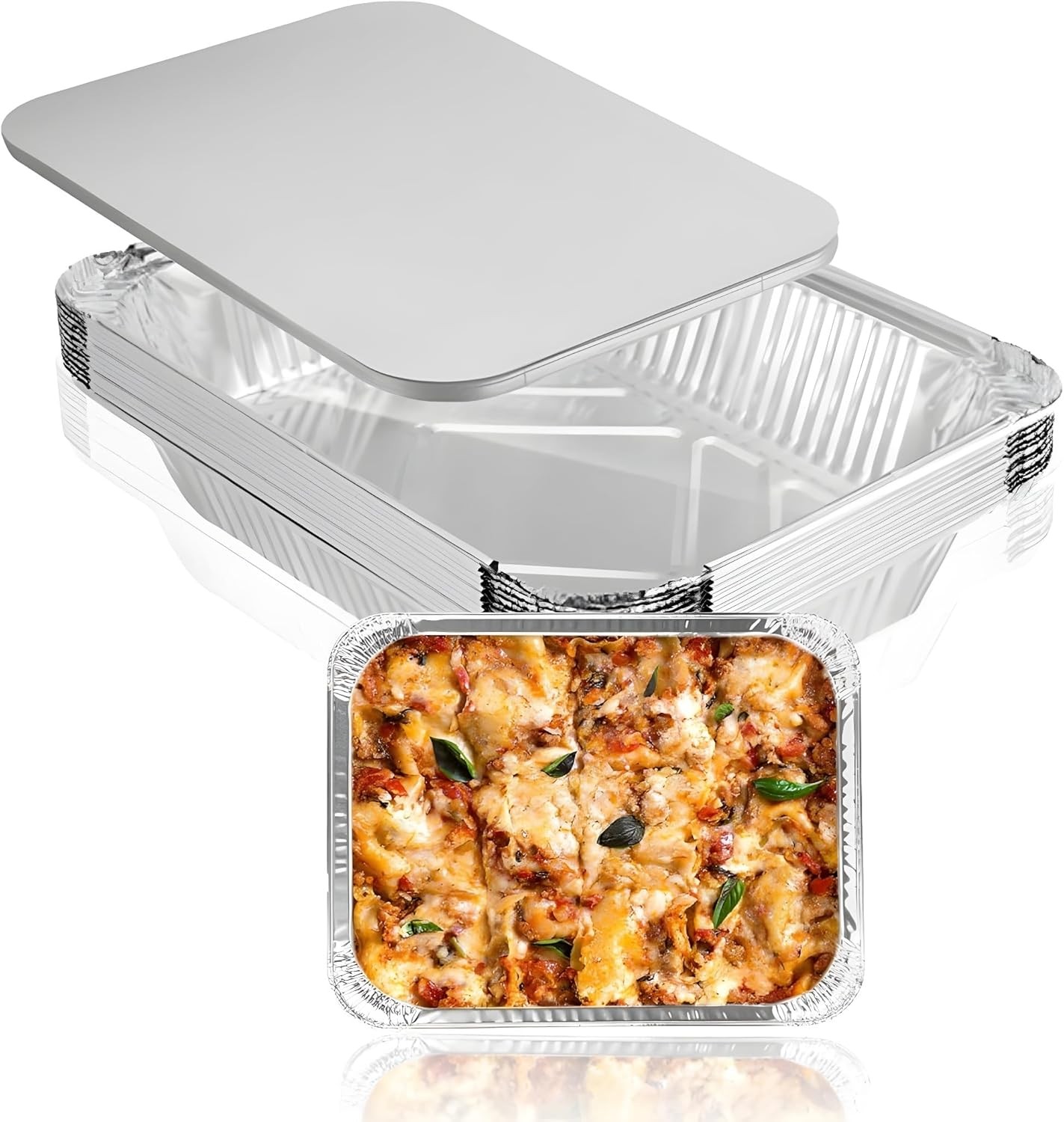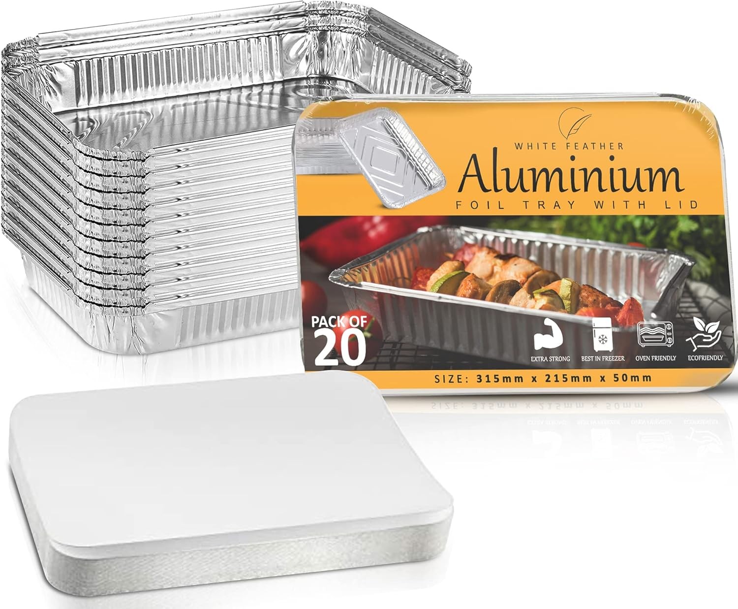20pcs Large Aluminium Foil Trays with Lids 31x20cm - BPA Free, Sturdy, Leakproo