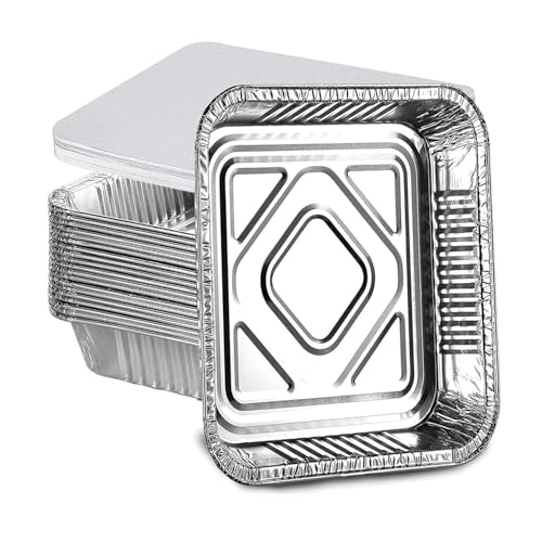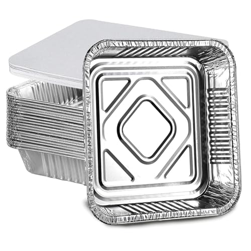 50 Pack Aluminium Foil Trays with Lids Tin Foil Containers Foil Baking Trays for Air Fryers Non-stick Aluminum Foil Pans Rectangle for BBQ Trays Meal Prep, Roasting, Grilling, Takeaway, Baking Tray