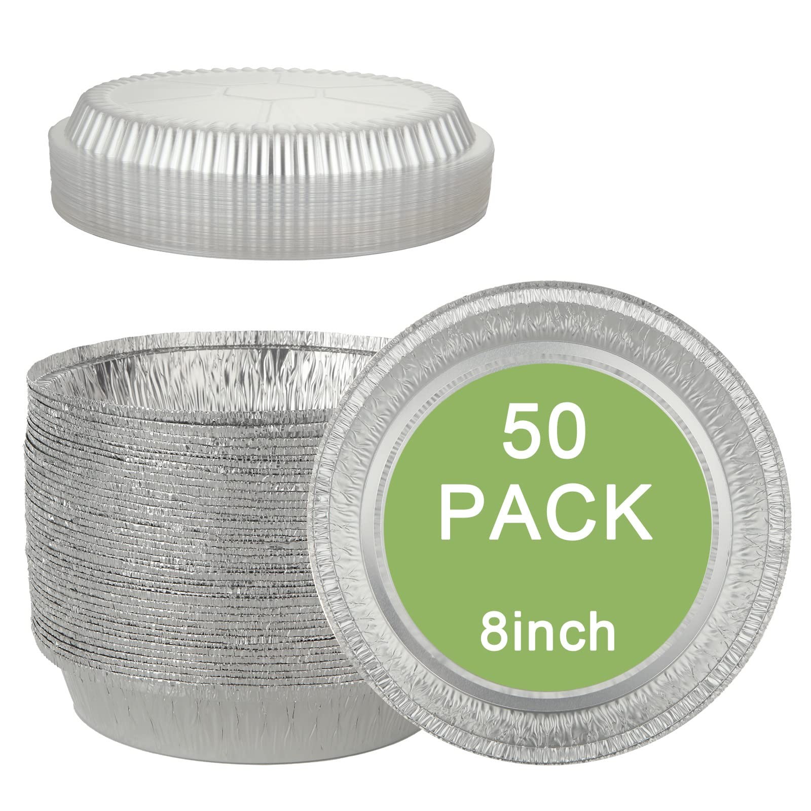 AKOLAFE 50PCS Tin Foil Trays With Lids, Large Round 8 Inch, One Size, Silver