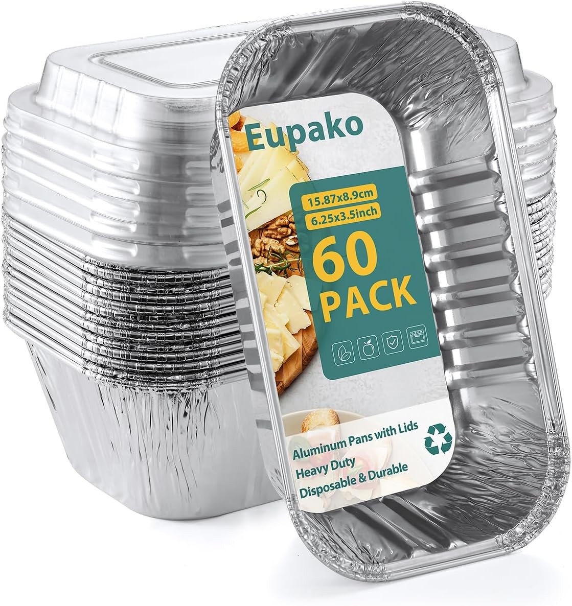 Eupako Foil Trays with Lids 60 Pack 15.8x8.75x5cm Reusable Food Containers for