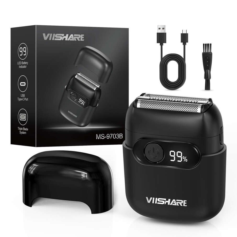 VIISHARE Electric Foil Shaver for Men - Mini Portable Electric Razor with 3 Floating Blades for Travel - Mens Shavers Cordless Rechargeable - Waterproof Wet Dry Razors for Close Shaving