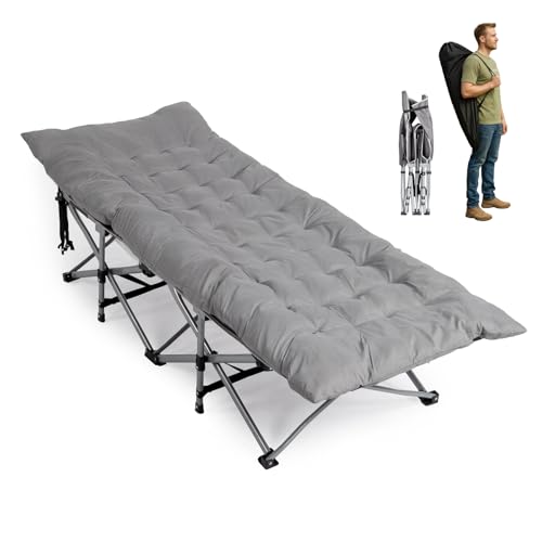 NPLSEO Folding Camping Cot Bed, Single Sleeping Cot with Removable Mattress, 78x28x15 Inches, Steel Frame and Oxford Cloth Guest Bed, Portable Fold Away Beds for Home Office Camping Traveling (Grey)