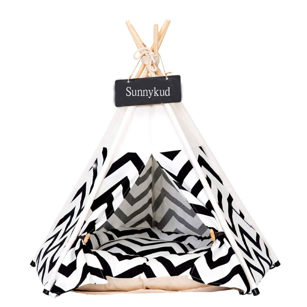 Tepee Tent for Pets, Dog / Cat / Pet Tent House with Cushion, Removable and Washable Pet Bed, Fold Away Pet Tent, Dog / Cat Bed, Black