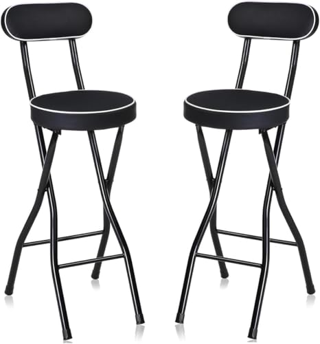 DZYHFCO Fold Away Stool 295inch Cushioned Padded Folding Bar Black High Chair with 275lbs Capacity Round(2pcs)