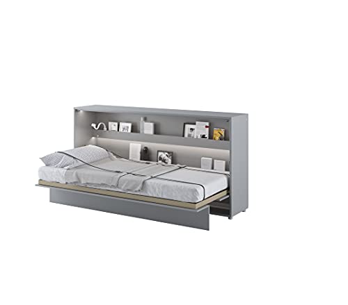 Arthauss Horizontal Wall Bed Concept BC-14 in Grey 160 cm with Functional Shelves, Fold Down Hidden Cabinet for Small Rooms