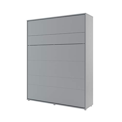 Arthauss Vertical Wall Bed in Elegant Grey Matt, Space Saving Fold Down Bed for Small Rooms, Multifunctional Cabinet Bed with Self-Holding Feature, Comfortable 90cm x 200cm