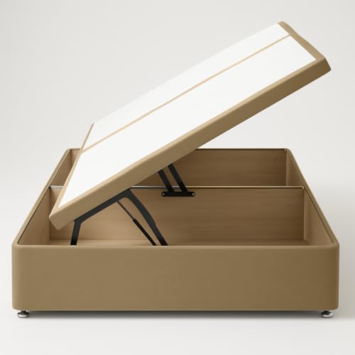MOORCROFT BEDS Ottoman Divan Bed Base Side Lift Up Storage Upholstered In Plush Velvet - No Mattress - 3FT Single, 4FT6 Double, 5FT Kingsize, 6FT Super King (Beige Plush, 3FT Single Side Lift)