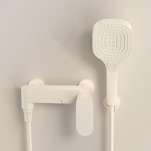 TTDGYYXW Basin Mixer Tap Bathroom Sink Taps Bath Mixer Taps with Shower Head Hot and Cold Foldable Bathtub Faucet Set Single Handle Wall Mounted with Shower White Lavatory Sink Faucet