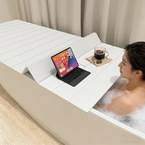 WORDFUN Foldable Bathtub Cover, White PVC Bath Caddy Tray, Waterproof Durable Bathroom Shelf, Antidust, Insulation Covers Lid, EcoFriendly PVC, For Home Hotel Spa(96 * 66cm)