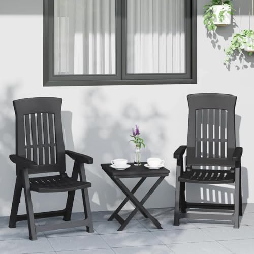 SooIarix Anthracite Polypropylene Garden Reclining Chairs, 2-Piece Set, Adjustable Backrest, Foldable Patio Chairs for Outdoor Relaxation and Balcony Use