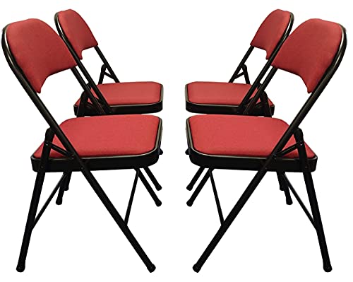 Meta Deluxe Burgundy Red Fabric Padded Folding Chair with Steel Frame Comfortable Seat Home Office Reception Dining Party Outing Foldable Desk Chairs Easy Storage Backrest, 40x46x78 cm (4 Piece Set)