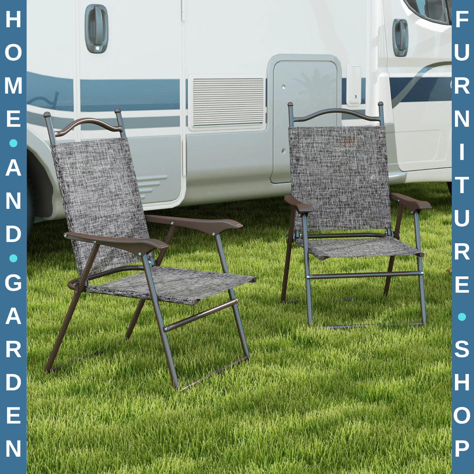 Foldable Garden Chairs Patio Set of 2 Outdoor Camping Mesh Seats Steel Legs Grey