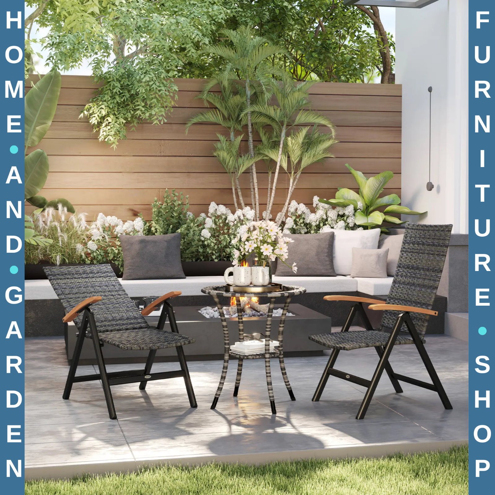 Outdoor Foldable Dining Chairs Set Two Pieces With Armrests High Backrest Grey