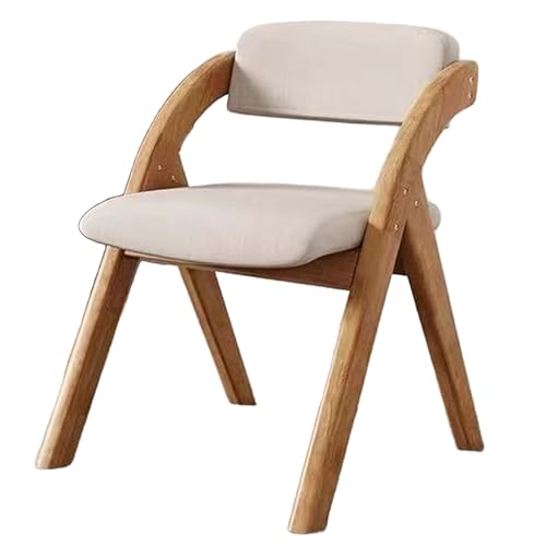 Folding Chairs with Cushion Linen Padded Seat Foldable Dining Chairs Portable Raw Wooden Frame for Dining Room Parties offices Indoor Outdoor Use Comfortable beige cover Solid wood frame
