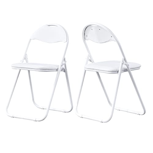 Folding Chair Padded Paris Faux Leather, White Pack of 2, Comfortable Space Saving Foldable Dining, Office Chairs, Durable Steel Frame with Soft Cushion Seat, Portable & Easy to Store, Max Load 114 kg