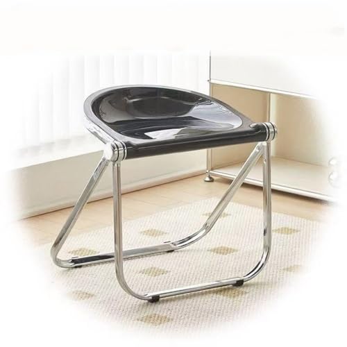 OPOLDBDMAC Acrylic Folding Stool Clear Foldable Dining Chairs Plastic With Metal Frame, Portable Backless Chairs For Home Office Living Room Dining Room Cafe(Black)