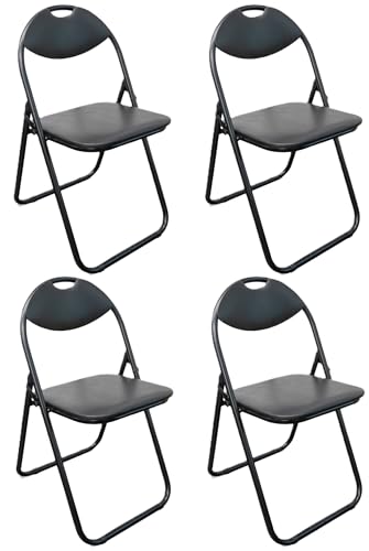 Folding Chair Padded Paris Faux Leather, Black Pack of 4, Comfortable Space Saving Foldable Dining, Office Chairs, Durable Steel Frame with Soft Cushion Seat, Portable & Easy to Store, Max Load 114 kg