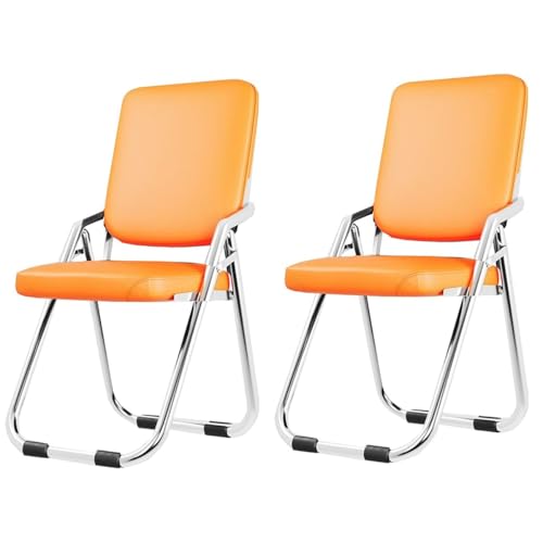 ZJYIGOWL Folding Chairs With Cushion Heavy Duty Steel Frame Foldable Dining Chairs Leather Indoor Outdoor Padded Chair For Home, Conference Room,Wedding, Camping(Orange,Set Of 2)