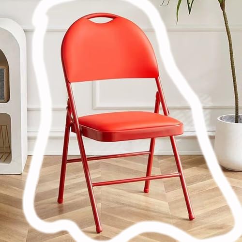 OPOLDBDMAC Folding Chairs Kitchen Living Room Foldable Chair Stackable Dining Chairs Compact Metal Frame Folding Seat With Padded Metal Frame For Indoor Outdoor(Red)