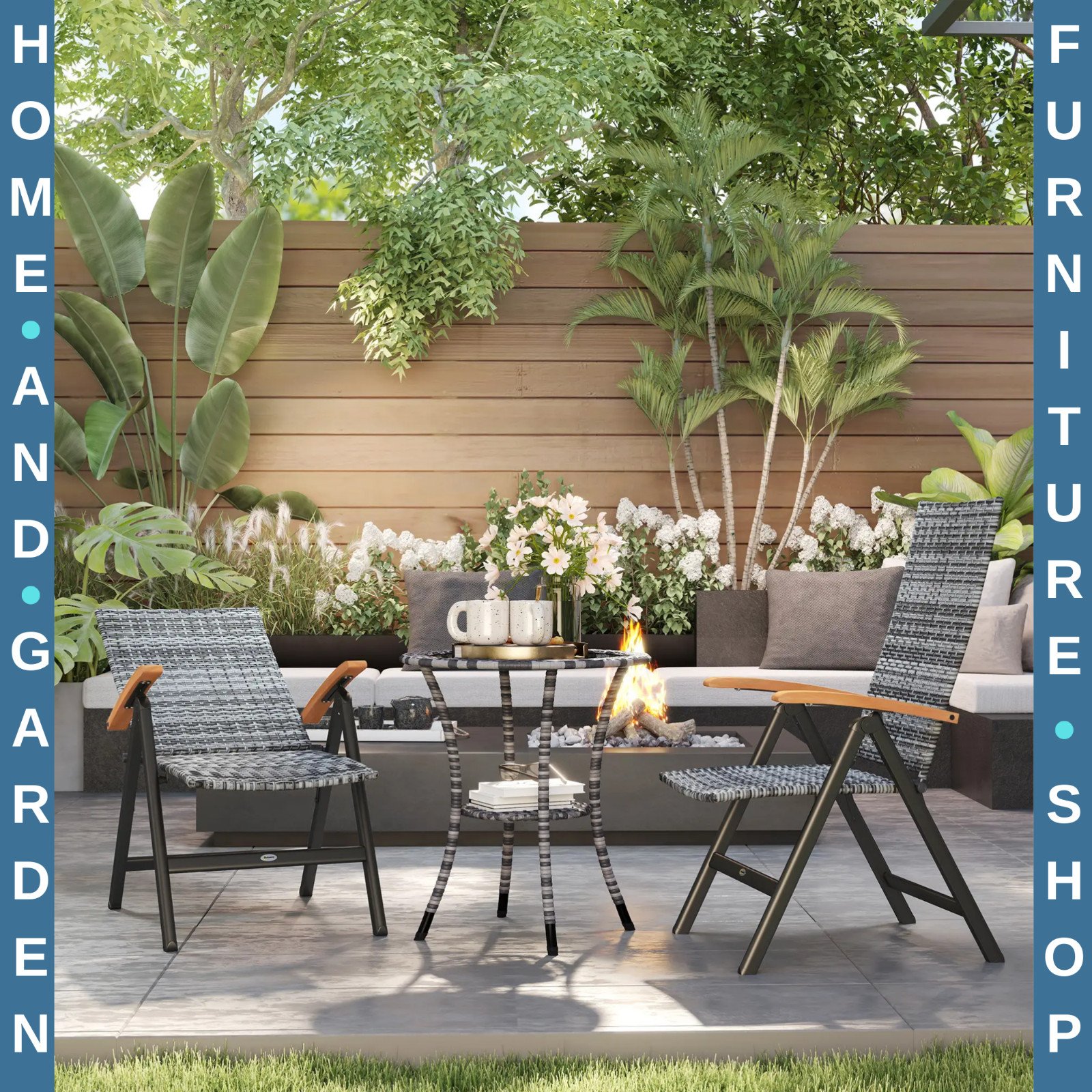 zaanieo Garden Chairs Set of 2, Foldable Rattan Dining Chairs with 5-Position, Recline Handwoven Plastic Wicker Outdoor Chair for Garden, Lawn, Porch, Backyard, Poolside, Grey